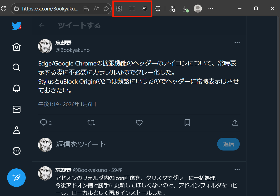 拡張機能のピン留めを外すことでも楽に対処できるが、頻繁にいじりたい拡張機能はヘッダーに常時表示させておきたい(自分の場合はStylusとuBlock Origin)。
