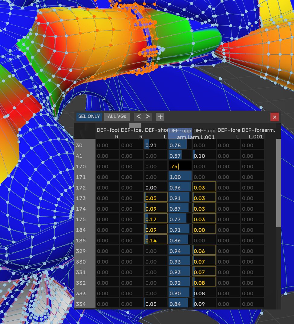 このアドオンの既存のウェイトテーブル機能は、ウェイトのスライダー調整ができなかったり編集モードで調整できなかったりなど制約がありました。