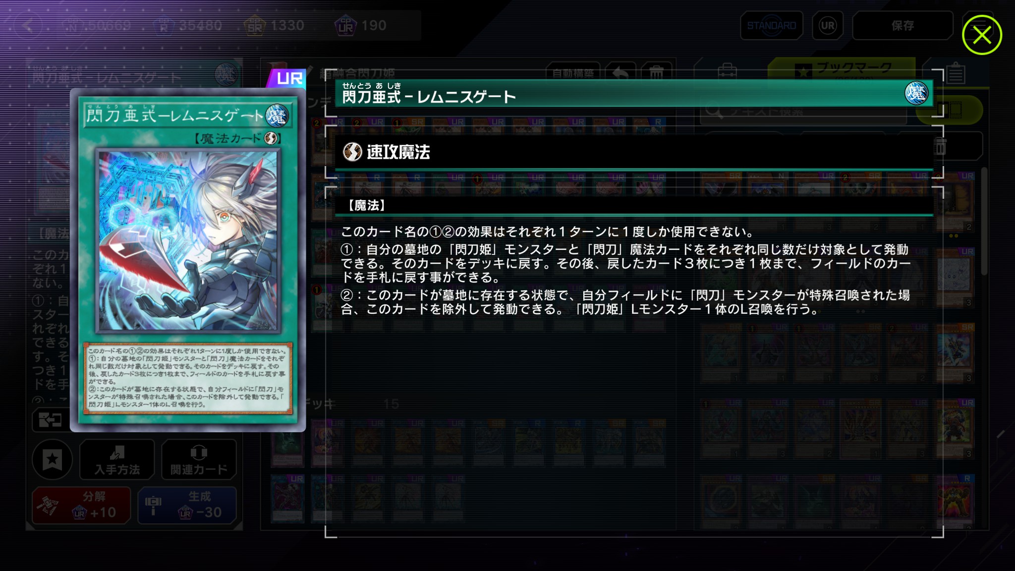 - ハヤテ(墓地かさ増し用) → リンケでゼロ → レムニス