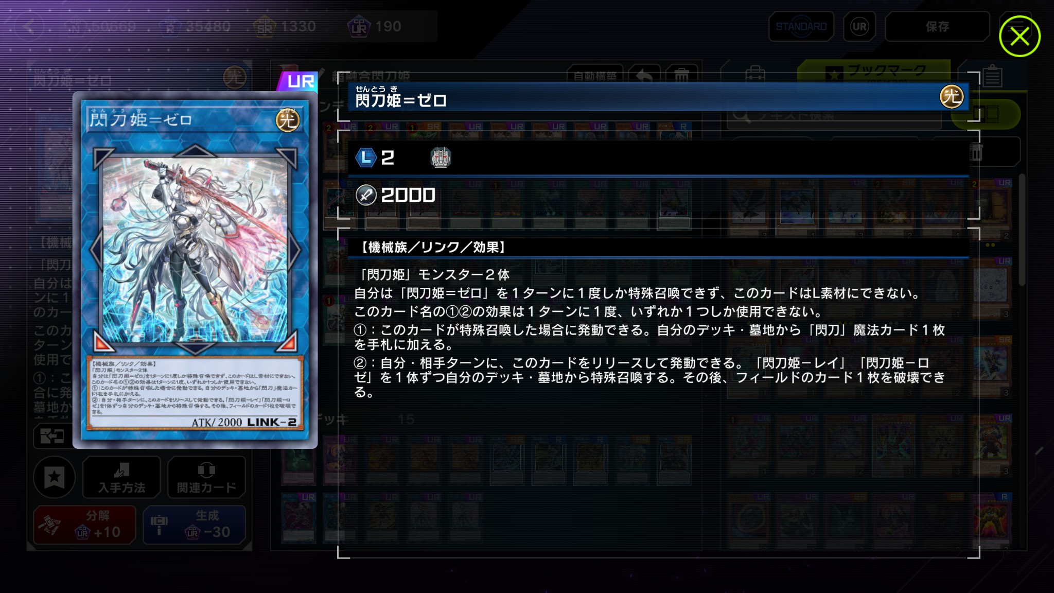 - リンケージ回収、2回目で適当な閃刀姫2500